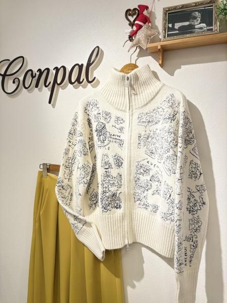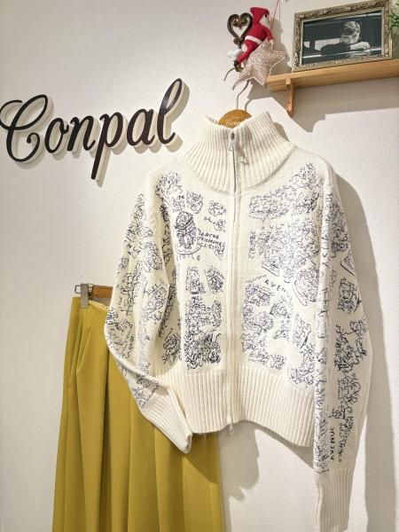 刺繍ジップニット